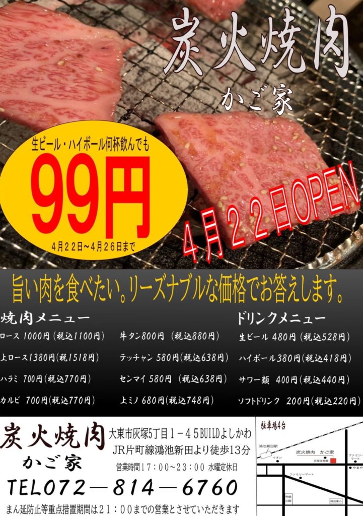大阪府大東市で焼肉店様より新聞折込のご依頼を頂きました!折込料2.7円〜オープンのご案内