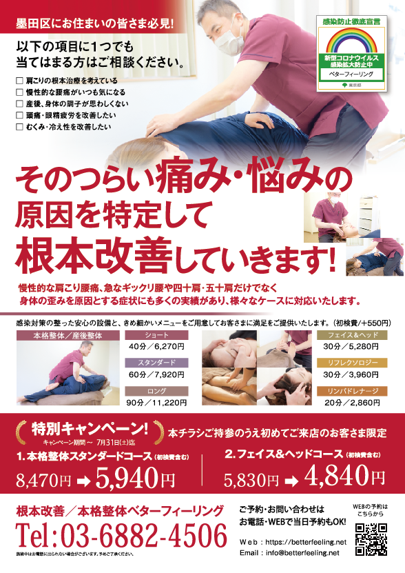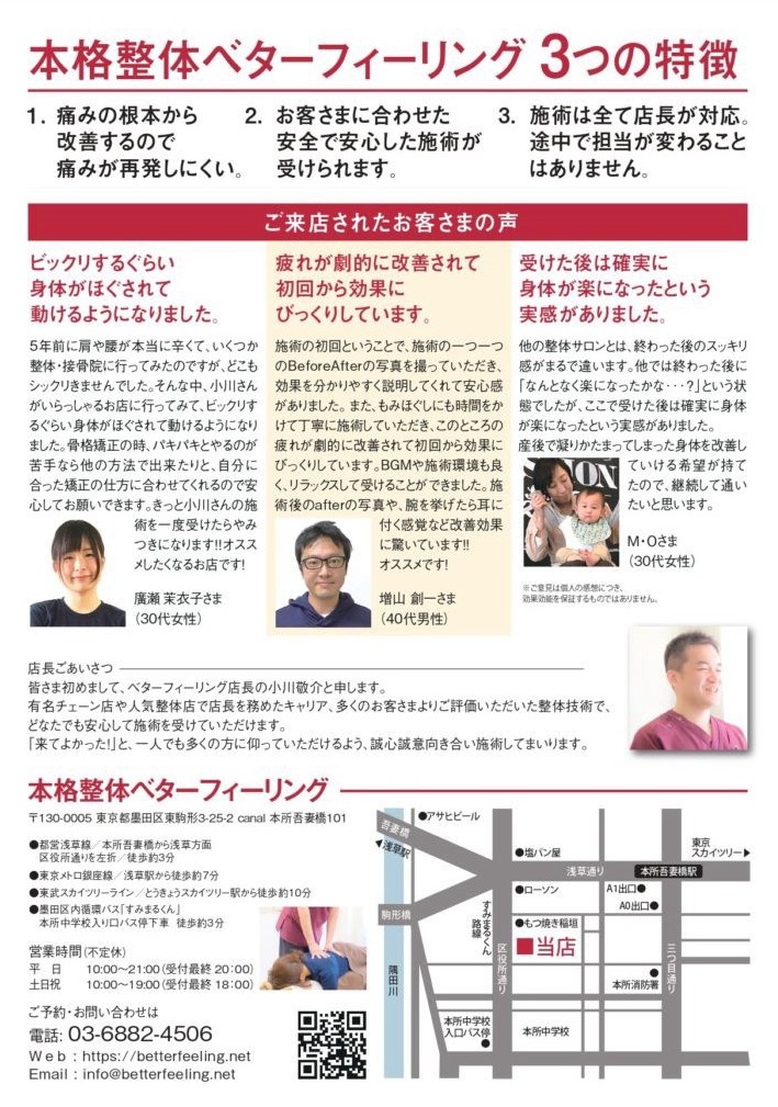 東京都墨田区で整体院様より新聞折込のご依頼いただきました!サービスのご案内
