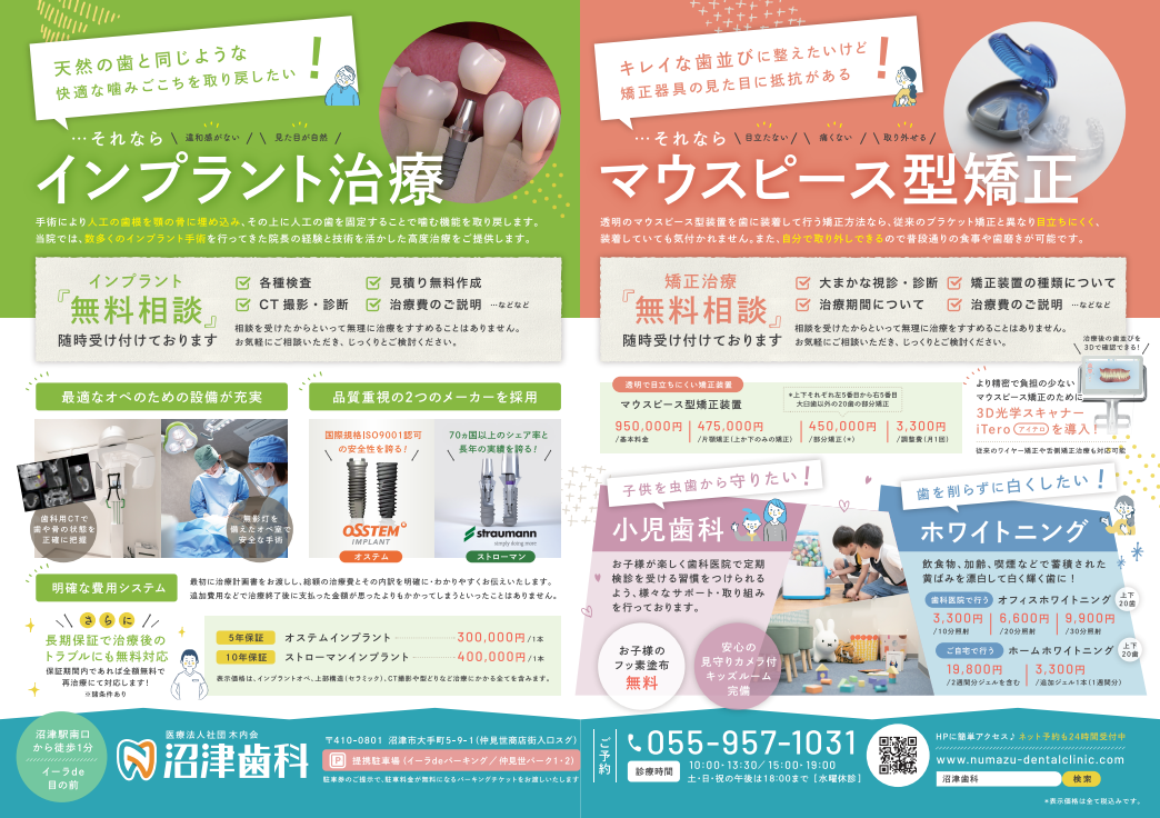 タグ: 新聞折込 沼津市, 集客チラシ, 歯科医院 沼津市, 新聞折込 印刷 沼津市, 静岡県沼津市大手町5-91, 新聞折込業者 沼津市, 新聞折込 歯科医院, チラシ印刷 沼津市, 0559571031, チラシデザイン業者 沼津市, 矯正治療, インプラント治療, 歯科医院 集客, 沼津市, 歯科医院 広告, 歯科医院, 歯科医院 チラシ, 沼津歯科, B4印刷, ホワイトニング