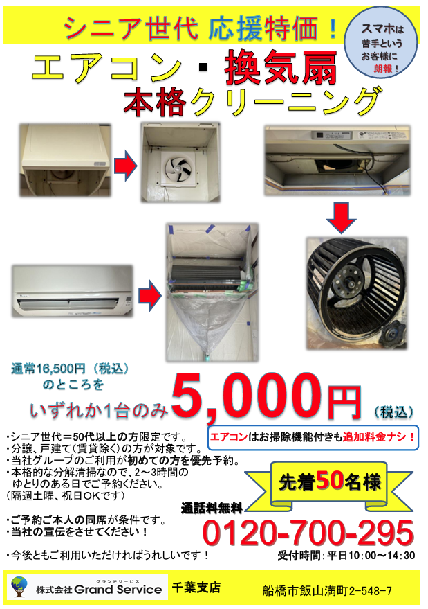 チラシの内容はエアコン・換気扇のクリーニングとなります。