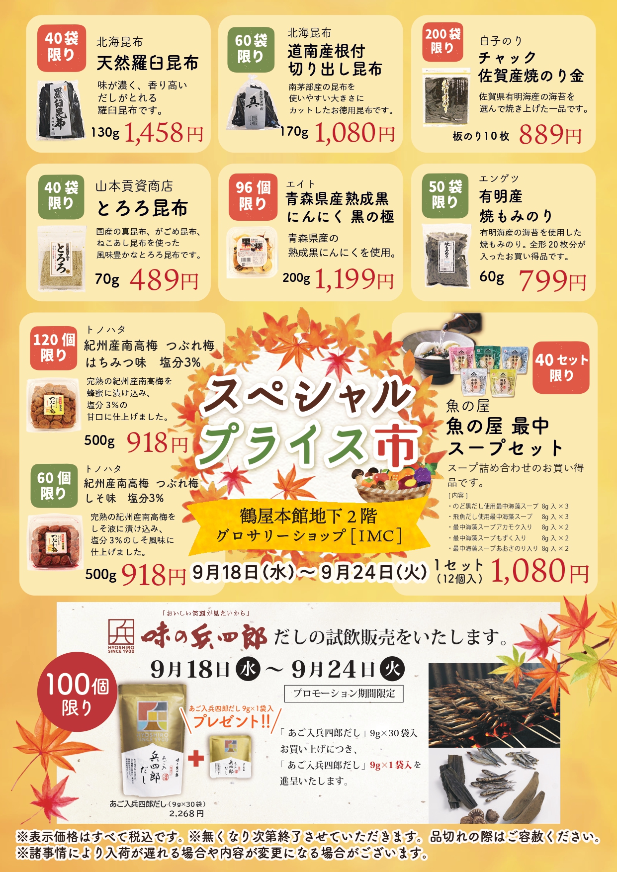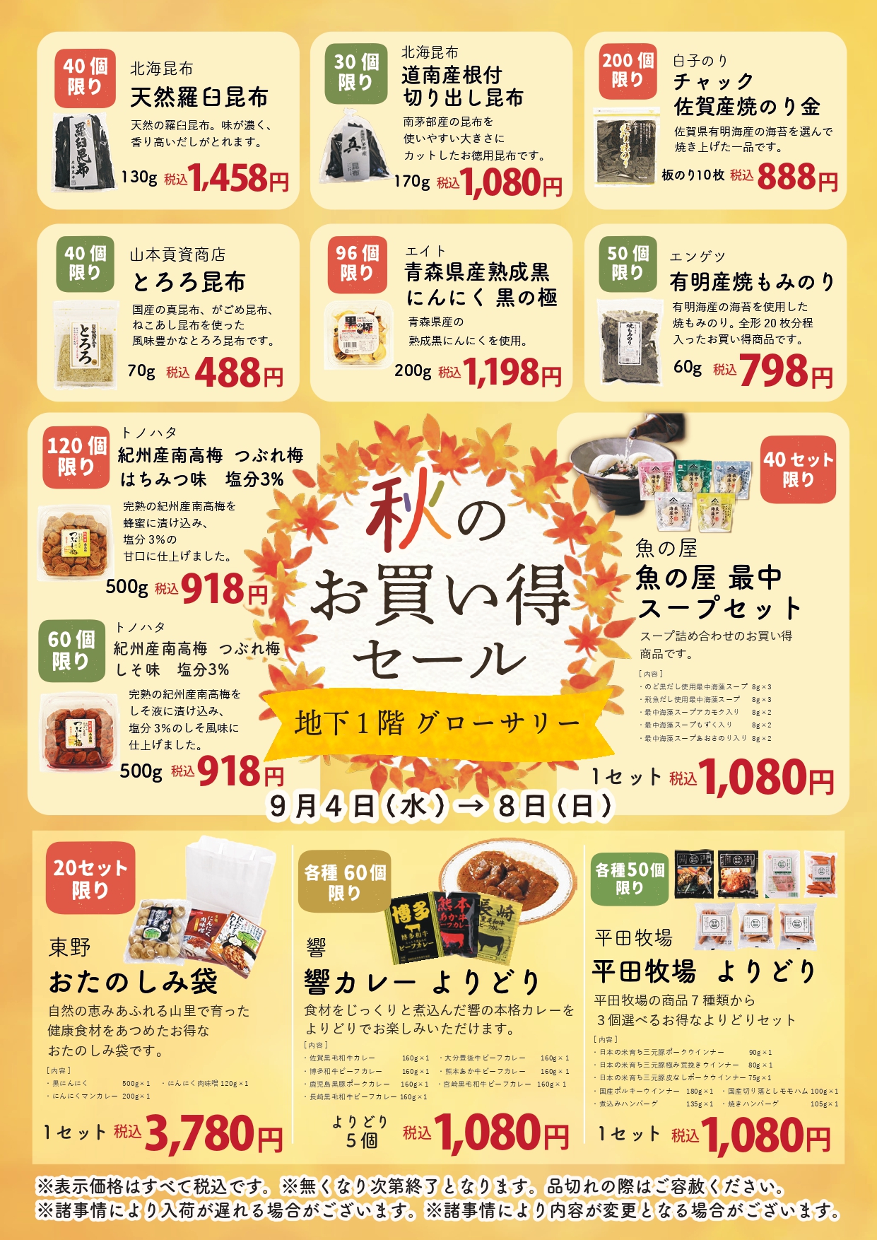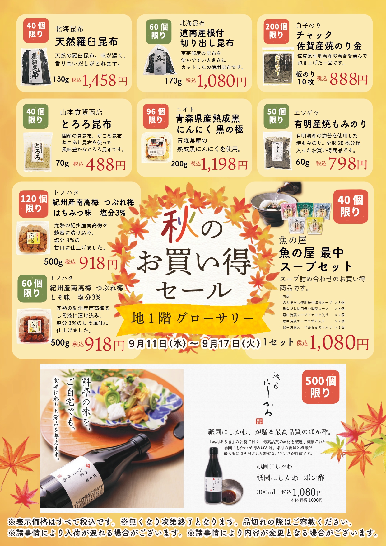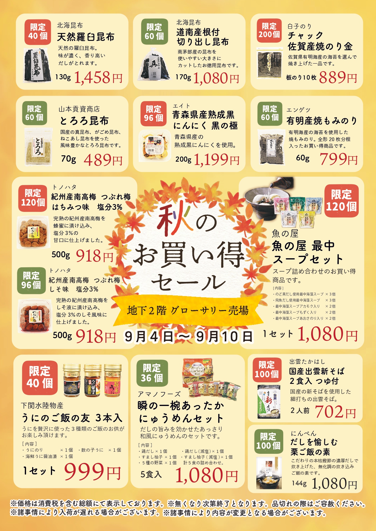 日本全国8カ所で食料品専門店様より新聞折込のご依頼を頂きました!秋のお買い得セールのご案内