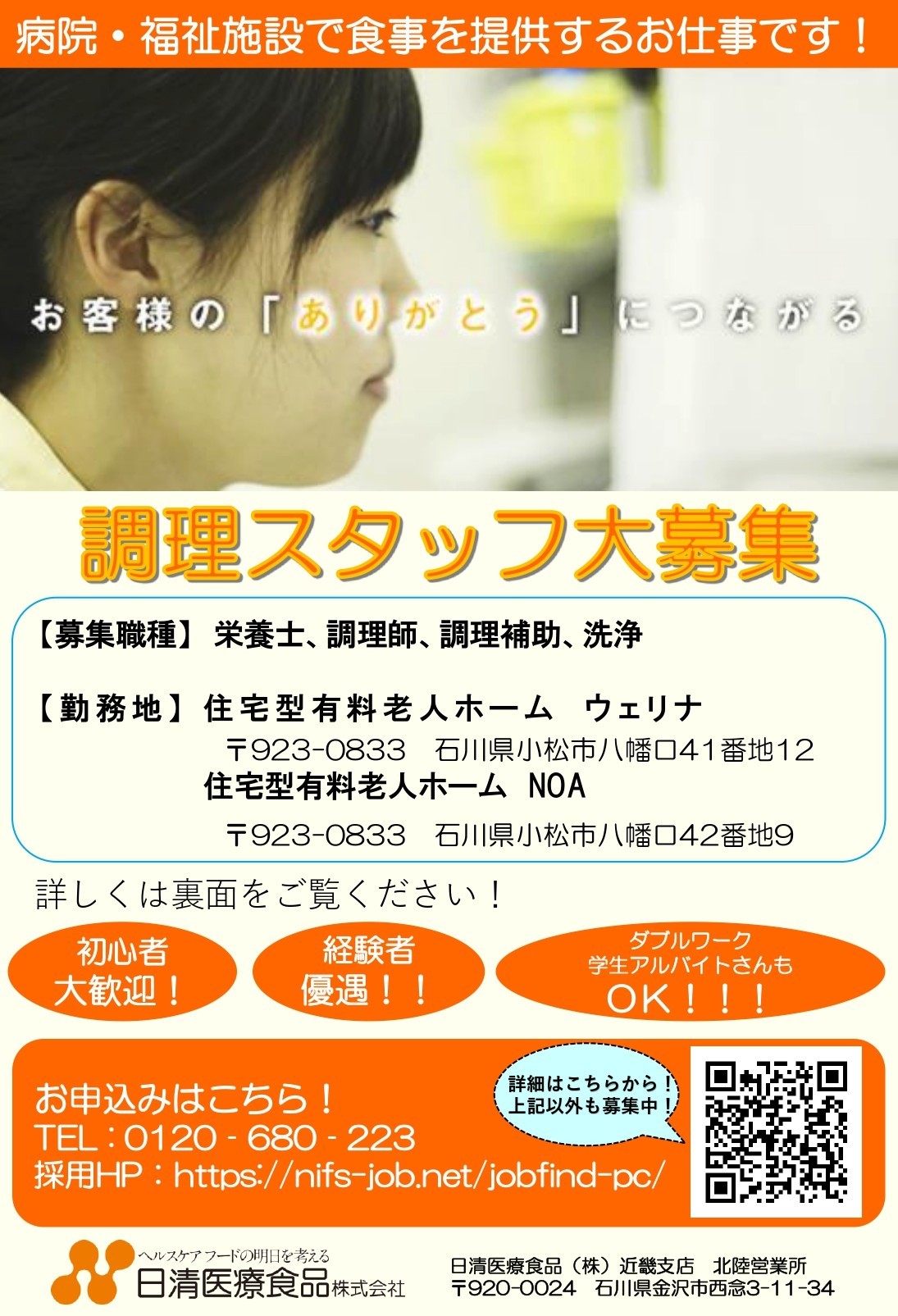 石川県加賀市、小松市で給食受託会社様より新聞折込のご依頼を頂きました!求人募集のご案内