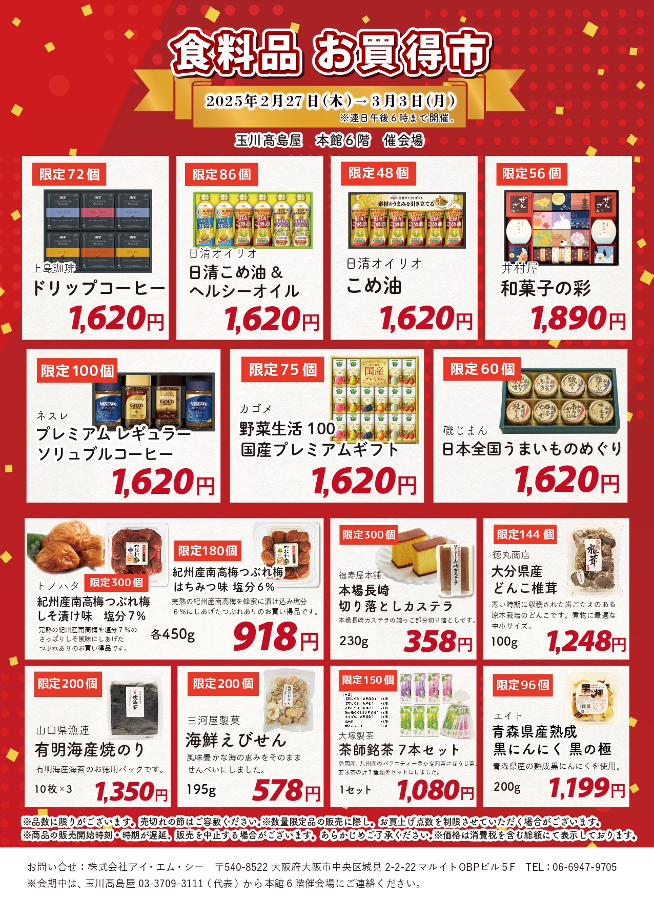 住所:東京都世田谷区玉川3-17-1(会場:玉川高島屋6階)