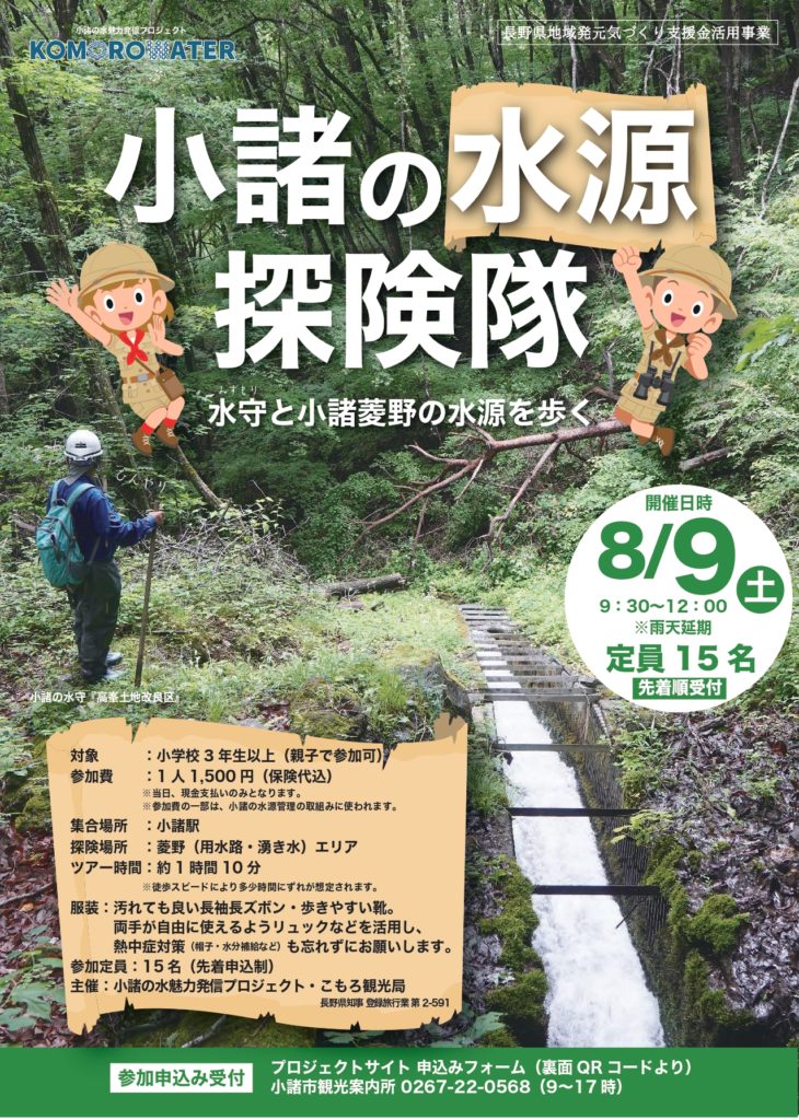 チラシの内容は小諸の水源水源探検隊です。