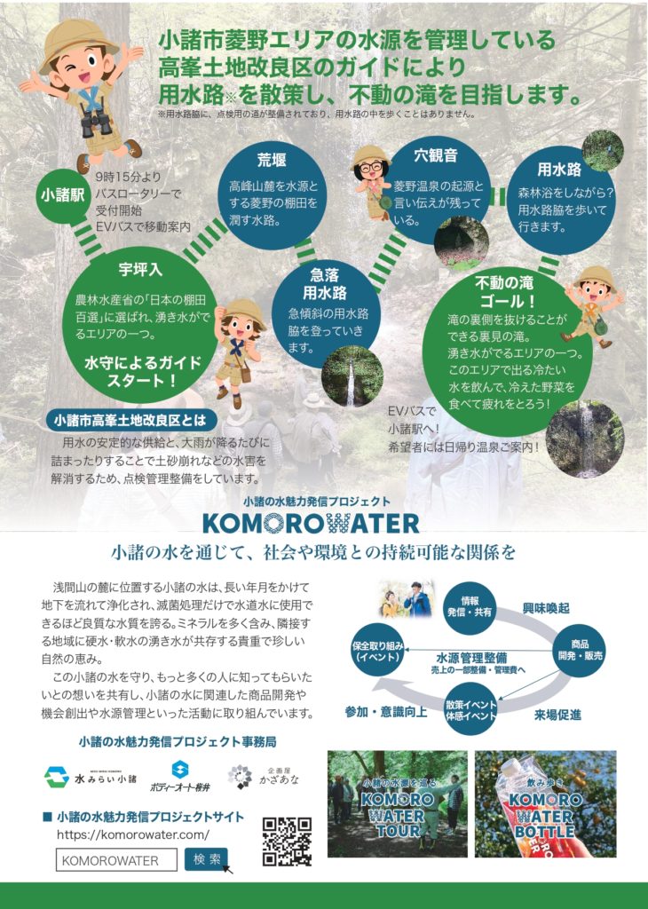 チラシ内容:小諸の水源ガイドツアー・イベント情報・社会、環境への取り組み