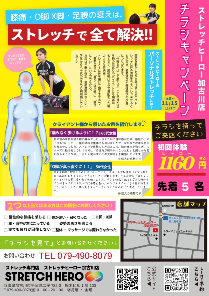 兵庫県加古川市でパーソナルストレッチ店様より新聞折込のご依頼を頂きました!初回特典のご案内