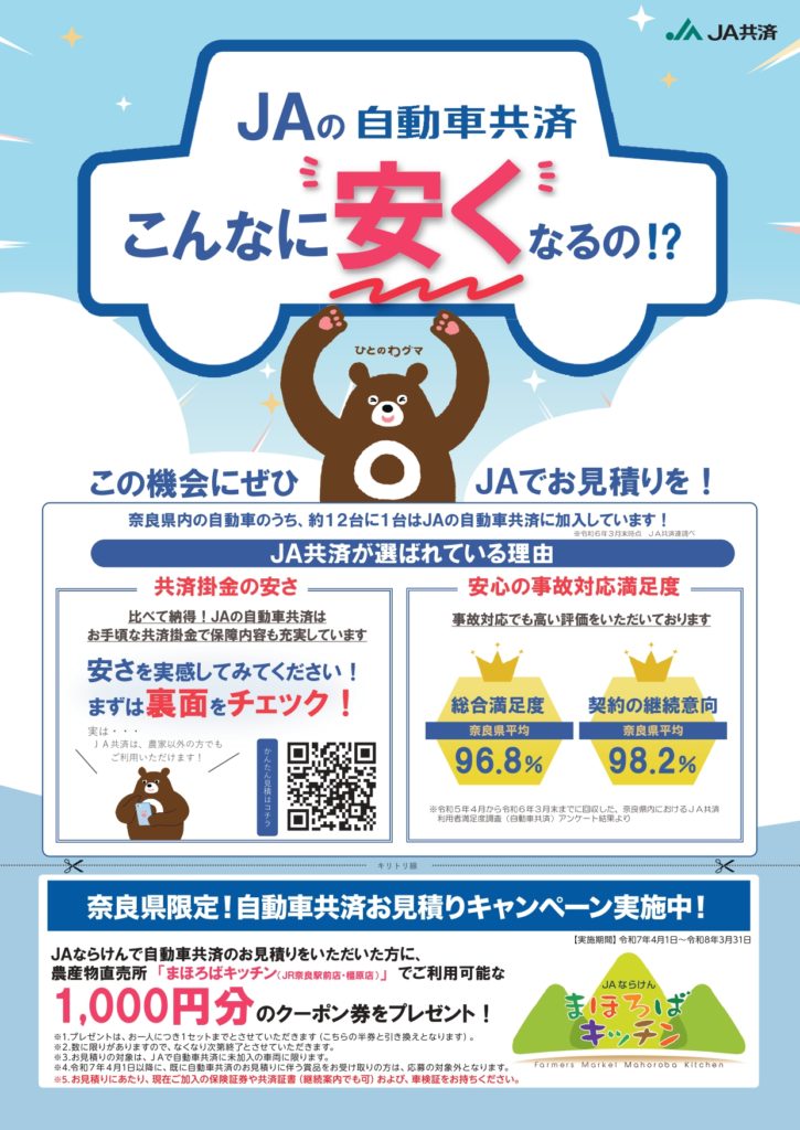 こんにちは、みらい新聞折込です。 奈良県でJA共済連様より新聞折込のご依頼を頂きました! 〇お客様情報(敬称略)JA共済住所:上記記載お問い合わせ先:上記記載・チラシをご覧になってご興味がございましたら、ぜひご連絡( …