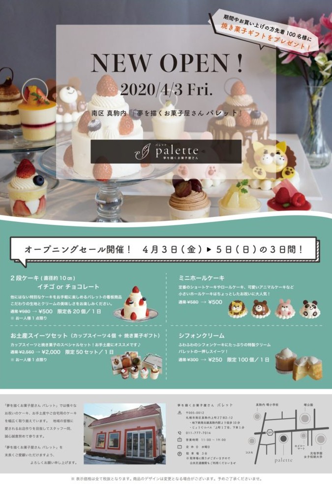 こんにちは💁♀️みらい新聞折込です! 北海道札幌市で洋菓子店様より新聞折込のご依頼いただきました! 〇お客様情報(敬称略)夢を描くお菓子屋さん パレット住所:札幌市北区北7条西5-5東洋カメラハウス1階(更新済み)お問 …