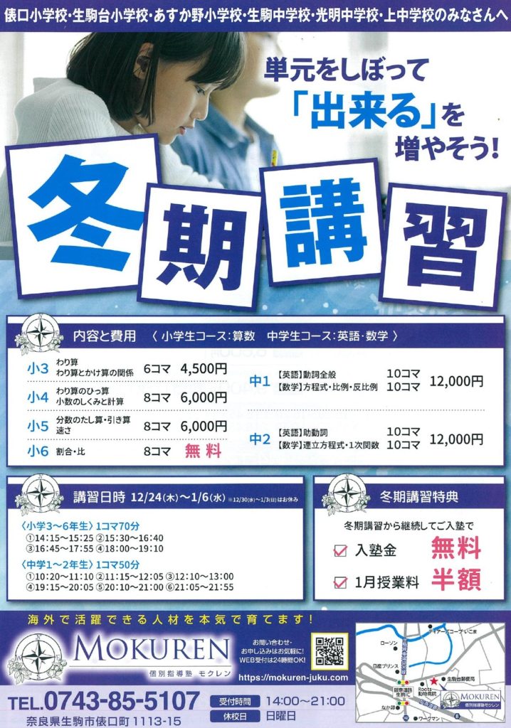 タグ: 0743-85-5107, 学習塾, 奈良県生駒市俵口町1113-15, 新聞折込 印刷, 生駒市, 新聞折込業者, 冬期講習, チラシデザイン業者, 奈良県 新聞折込, 個別指導塾 モクレン, 生駒市 新聞折込, 新聞折込 印刷 生駒市, 折込広告, 新聞折込業者 生駒市, オリコミ, チラシ印刷 生駒市, 奈良県, 学習塾 集客, チラシデザイン業者 生駒市, チラシ印刷, MOKUREN