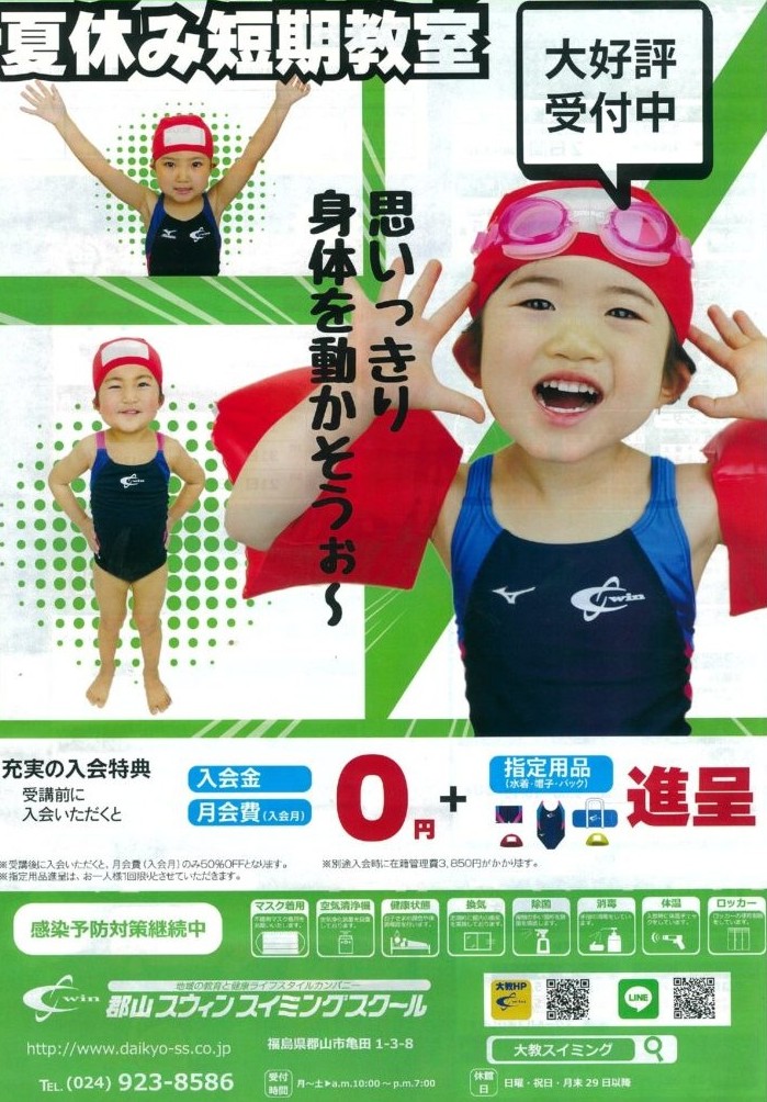 こんにちは💁♀️みらい新聞折込です! 福島県郡山市でスイミング教室様より新聞折込のご依頼を頂きました! 〇お客様情報(敬称略)スウィン大教スイミングスクール郡山北住所:福島県郡山市富久山町福原一斗蒔田4-1お問い合わせ …