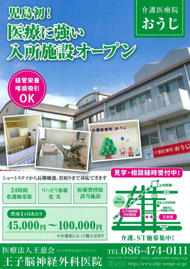 こんにちは!みらい新聞折込スタッフです! 岡山県倉敷市で介護医療院様より新聞折込のご依頼を頂きました! 〇お客様情報(敬称略)医療法人王慈会 王子脳神経外科医院住所:岡山県倉敷市児島下の町5-2-17お問い合わせ先:08 …