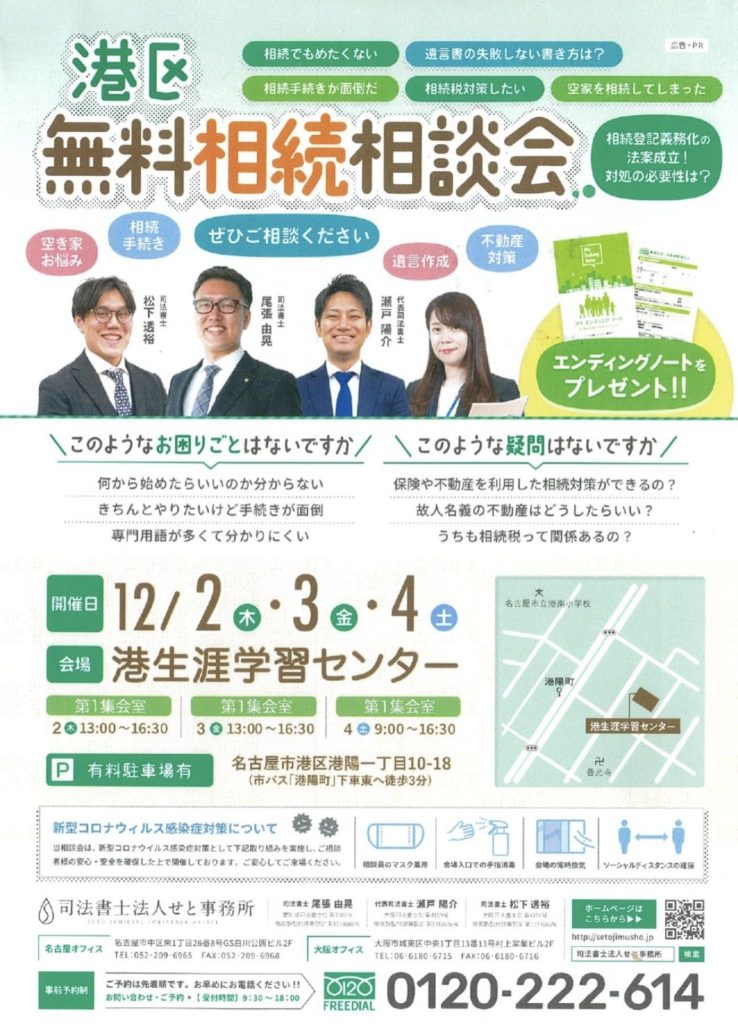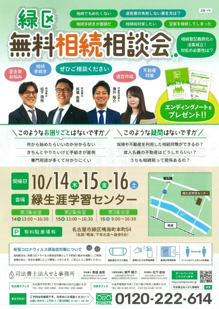 〇お客様情報(敬称略)司法書士事務所せと事務所住所:愛知県名古屋市中区栄1-26-8GS白川公園2F(更新済み)お問い合わせ先:0522096965(更新済み)・チラシをご覧になってご興味がございましたら、ぜひご連絡(訪 …