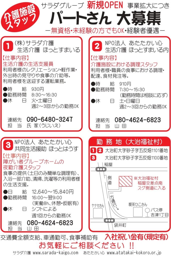 こんにちは!みらい新聞折込のスタッフです! チラシ内容のご紹介です!! 〇お客様情報(敬称略)サラダグループ住所:上記記載お問い合わせ先:同上・チラシをご覧になってご興味がございましたら、ぜひご連絡(訪問)してみてはいか …